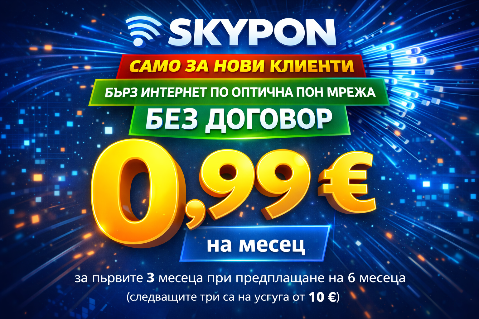 Вземете бърз оптичен интернет от SKYPON само за 0.99 € на месец през първите 3 месеца – и то без договор!